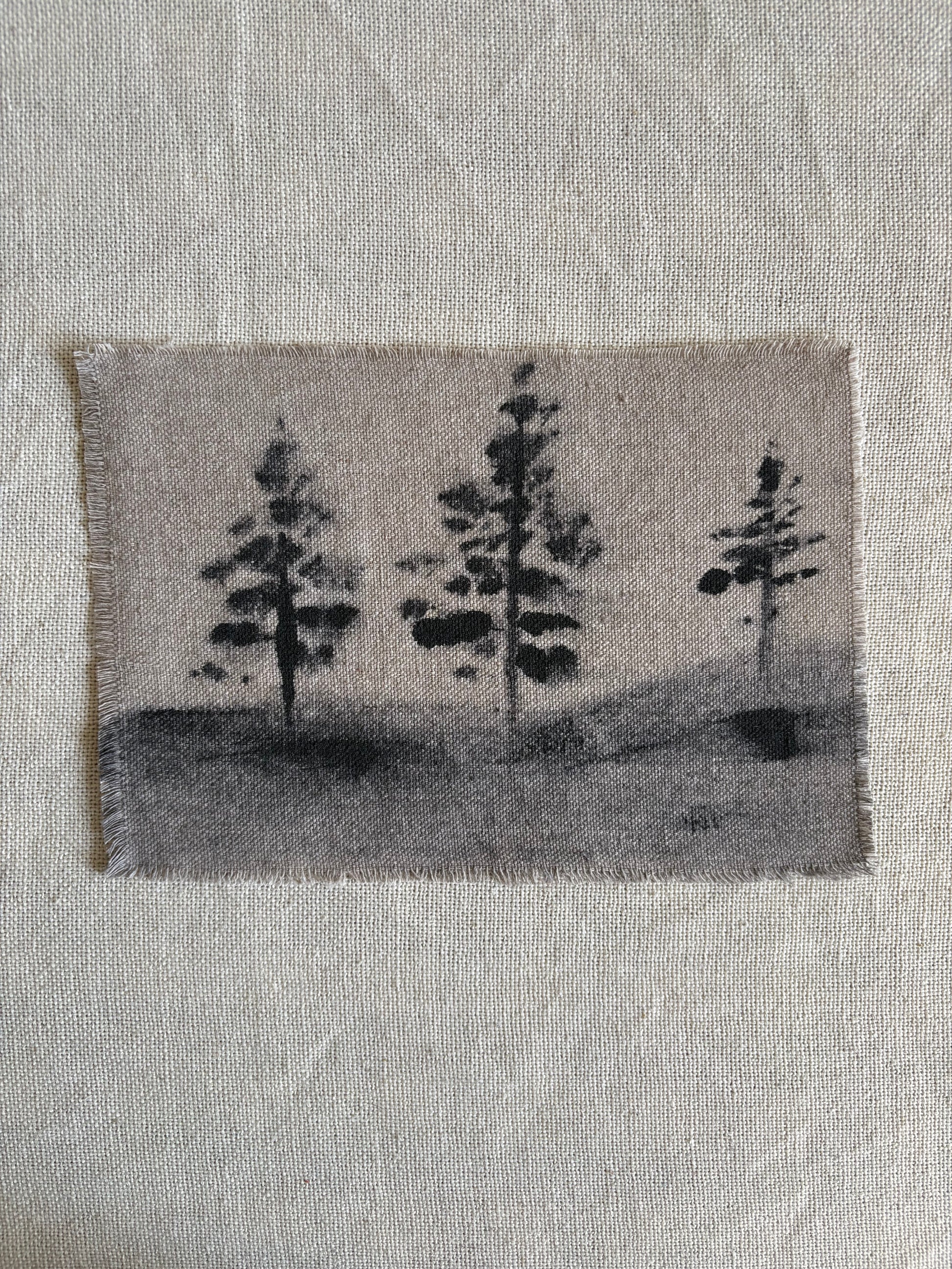 Water-based abstract landscapes on raw canvas fragments. Created from scrap canvas used in other bodies of work.