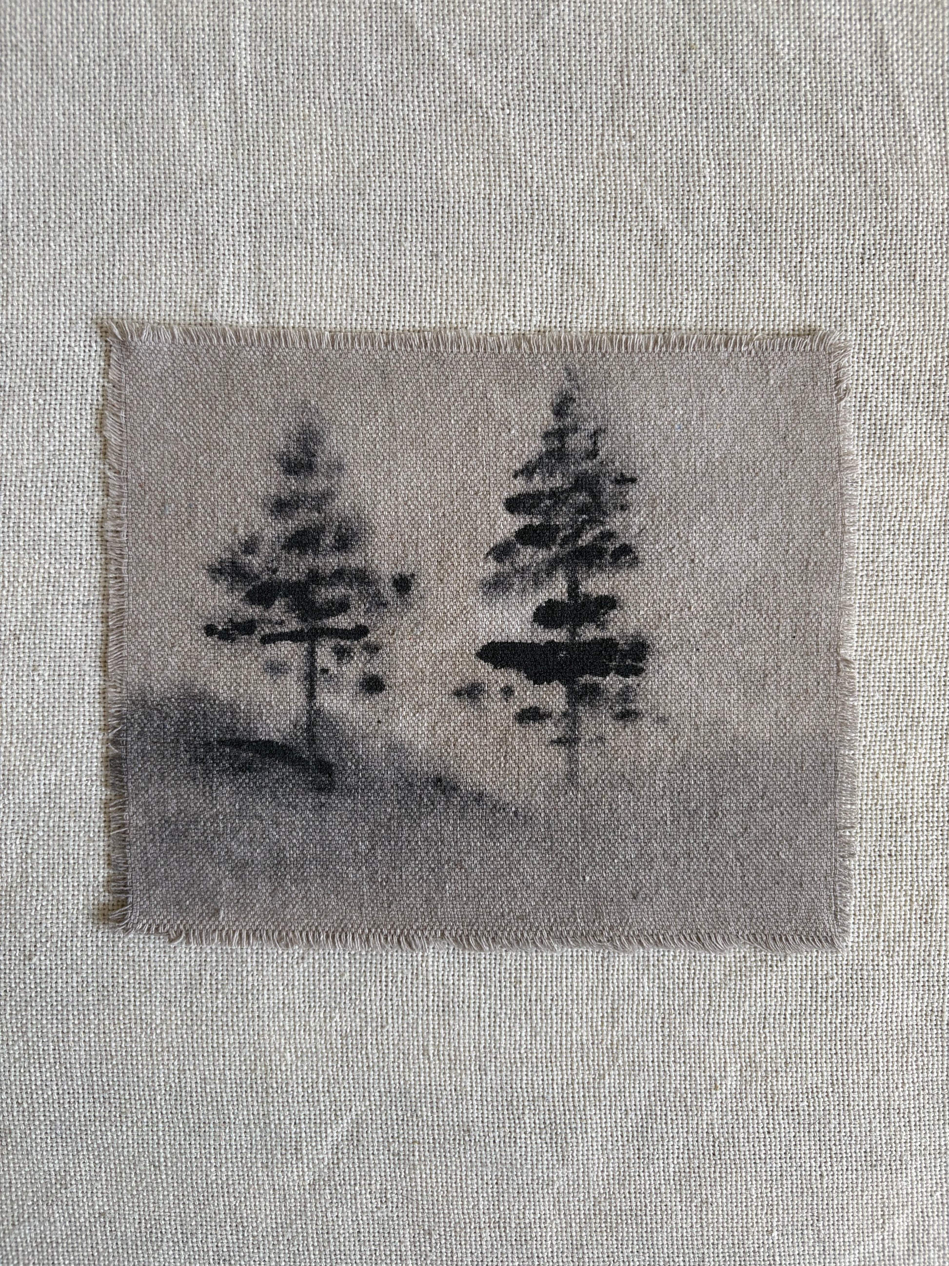 Water-based abstract landscapes on raw canvas fragments. Created from scrap canvas used in other bodies of work.