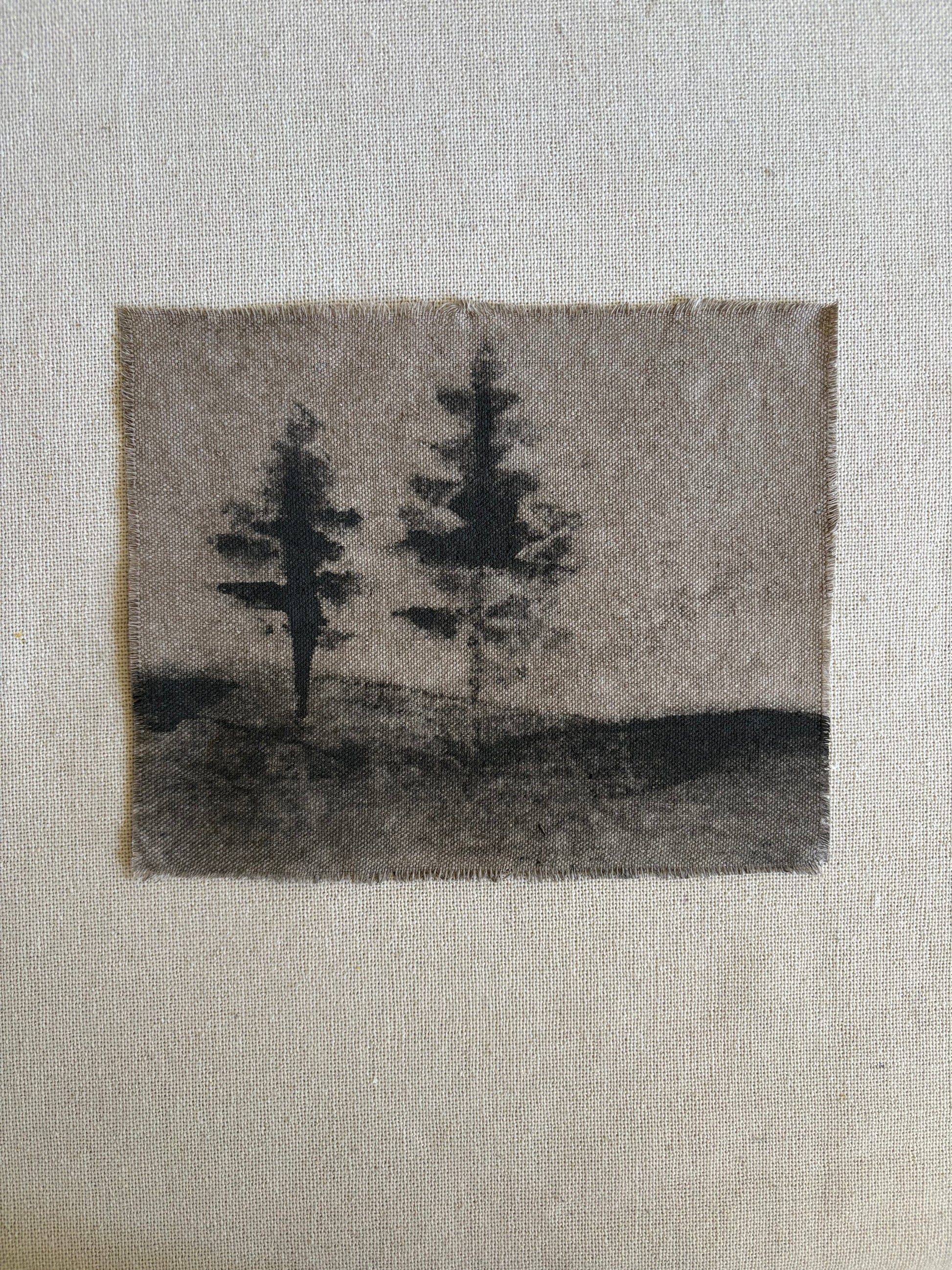 Water-based abstract landscapes on raw canvas fragments. Created from scrap canvas used in other bodies of work. By Cassidy Avalo. Unframed.