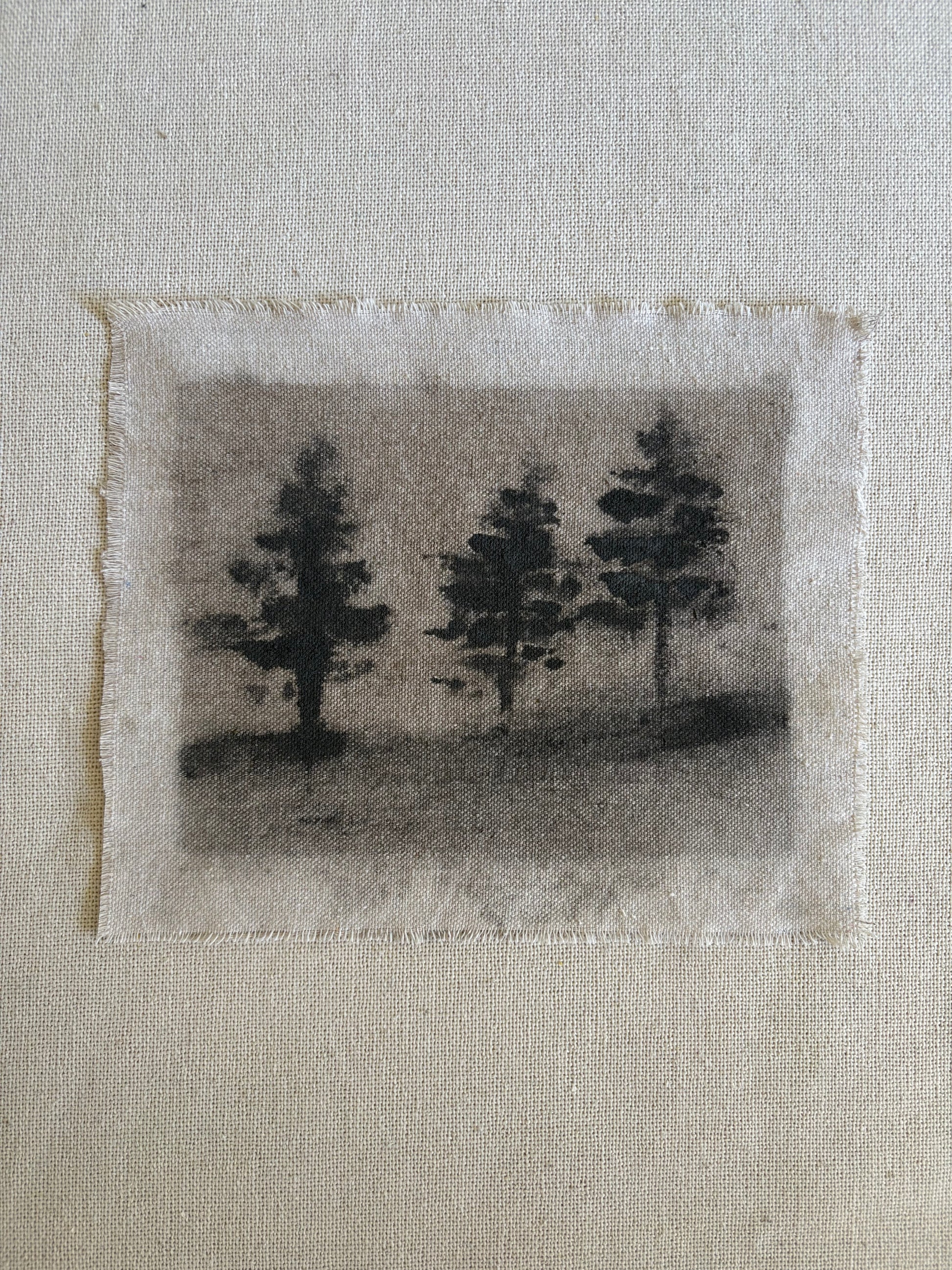 Water-based abstract landscapes on raw canvas fragments. Created from scrap canvas used in other bodies of work. By Cassidy Avalo. Unframed.