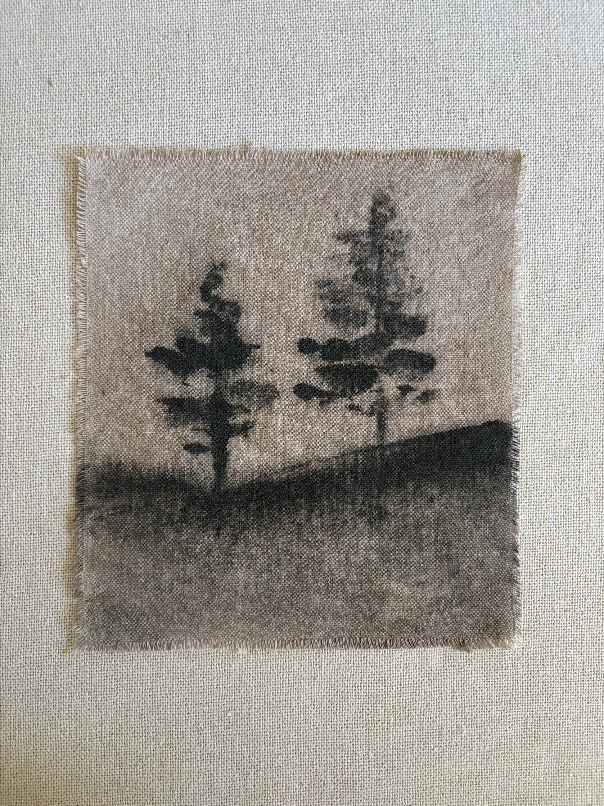 Water-based abstract landscapes on raw canvas fragments. Created from scrap canvas used in other bodies of work. By Cassidy Avalo. Unframed.