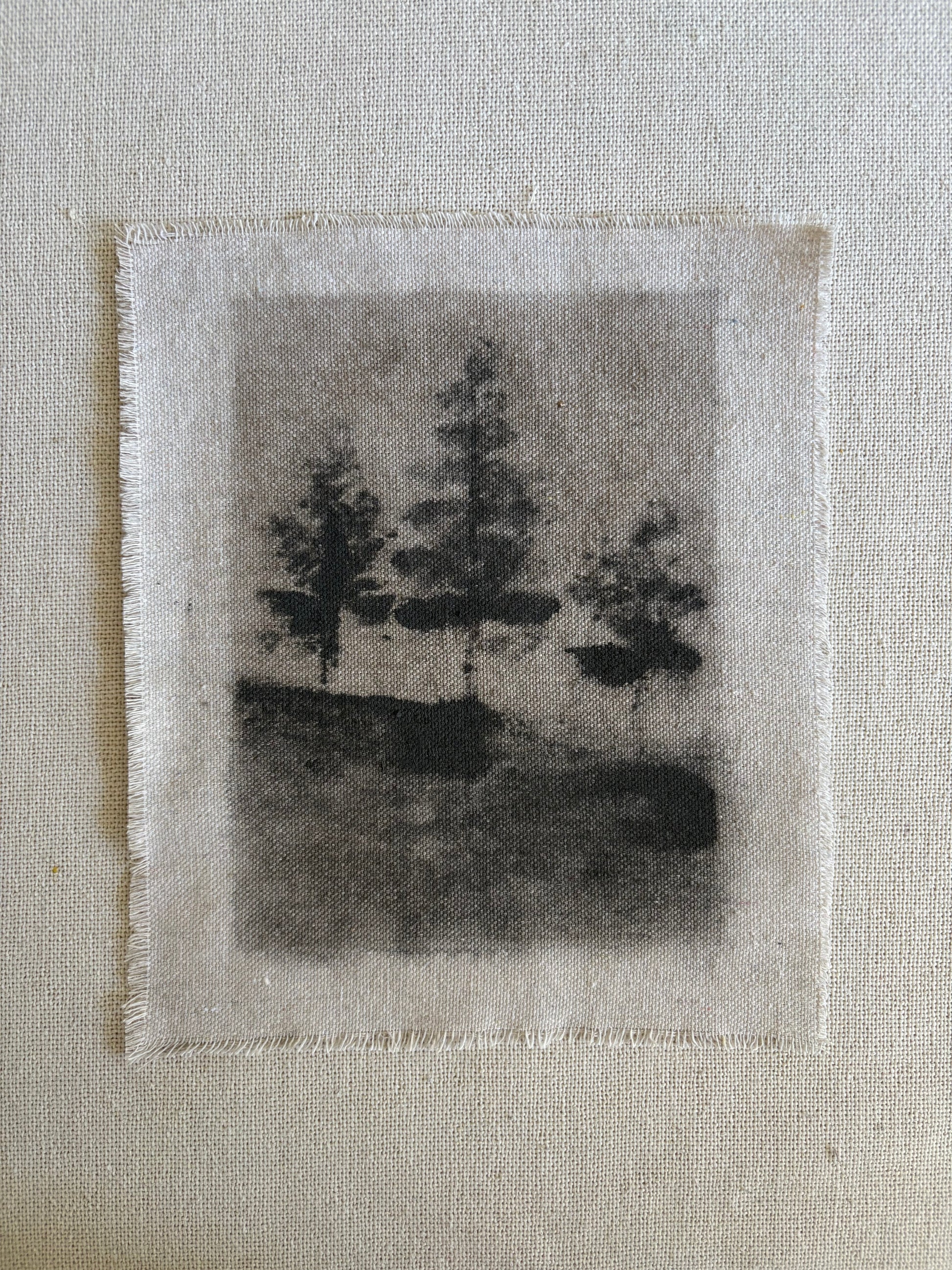 Water-based abstract landscapes on raw canvas fragments. Created from scrap canvas used in other bodies of work. By Cassidy Avalo. Unframed.