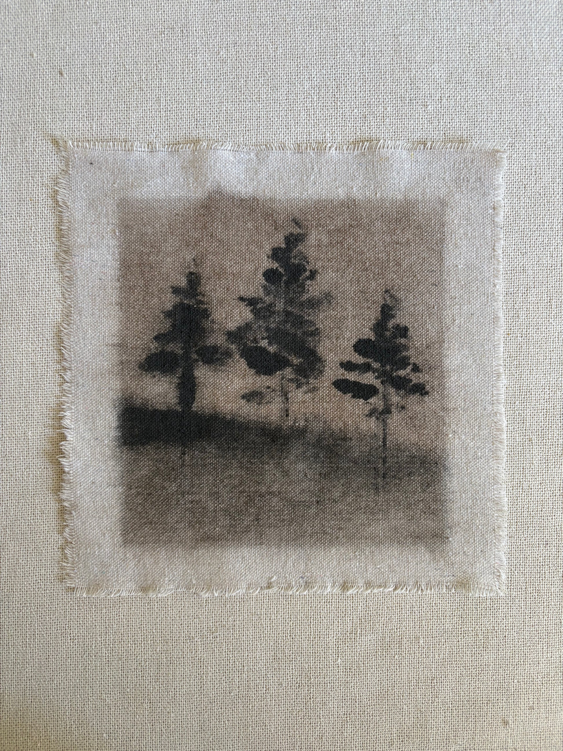 Water-based abstract landscapes on raw canvas fragments. Created from scrap canvas used in other bodies of work. By Cassidy Avalo. Unframed.