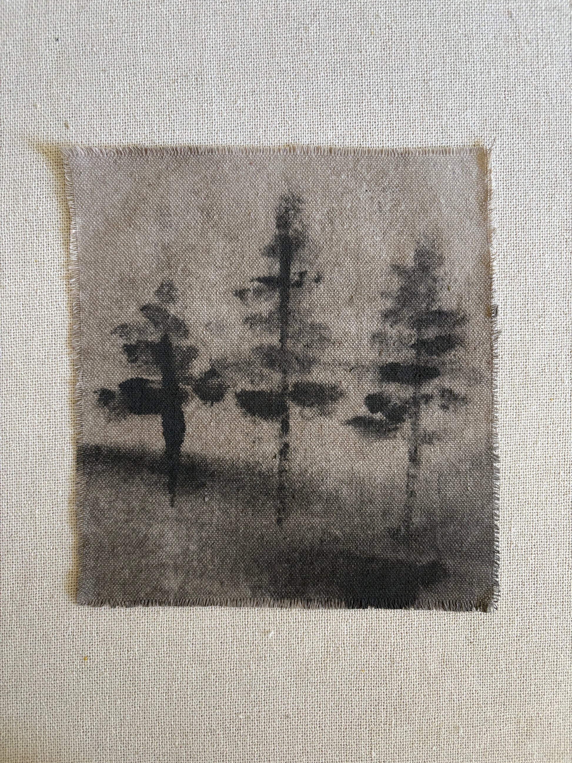 Water-based abstract landscapes on raw canvas fragments. Created from scrap canvas used in other bodies of work. By Cassidy Avalo. Unframed.