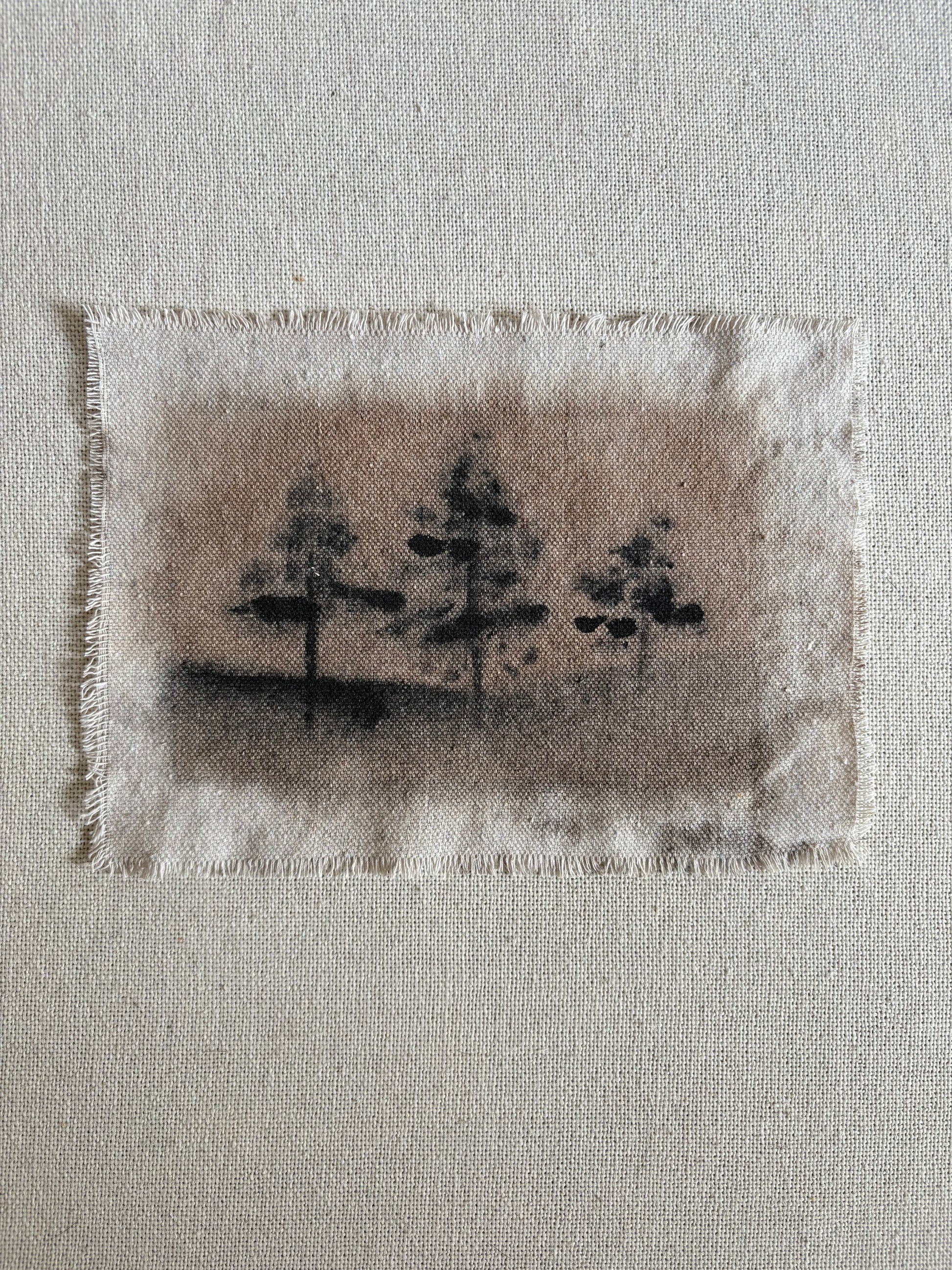 Water-based abstract landscapes on raw canvas fragments. Created from scrap canvas used in other bodies of work.