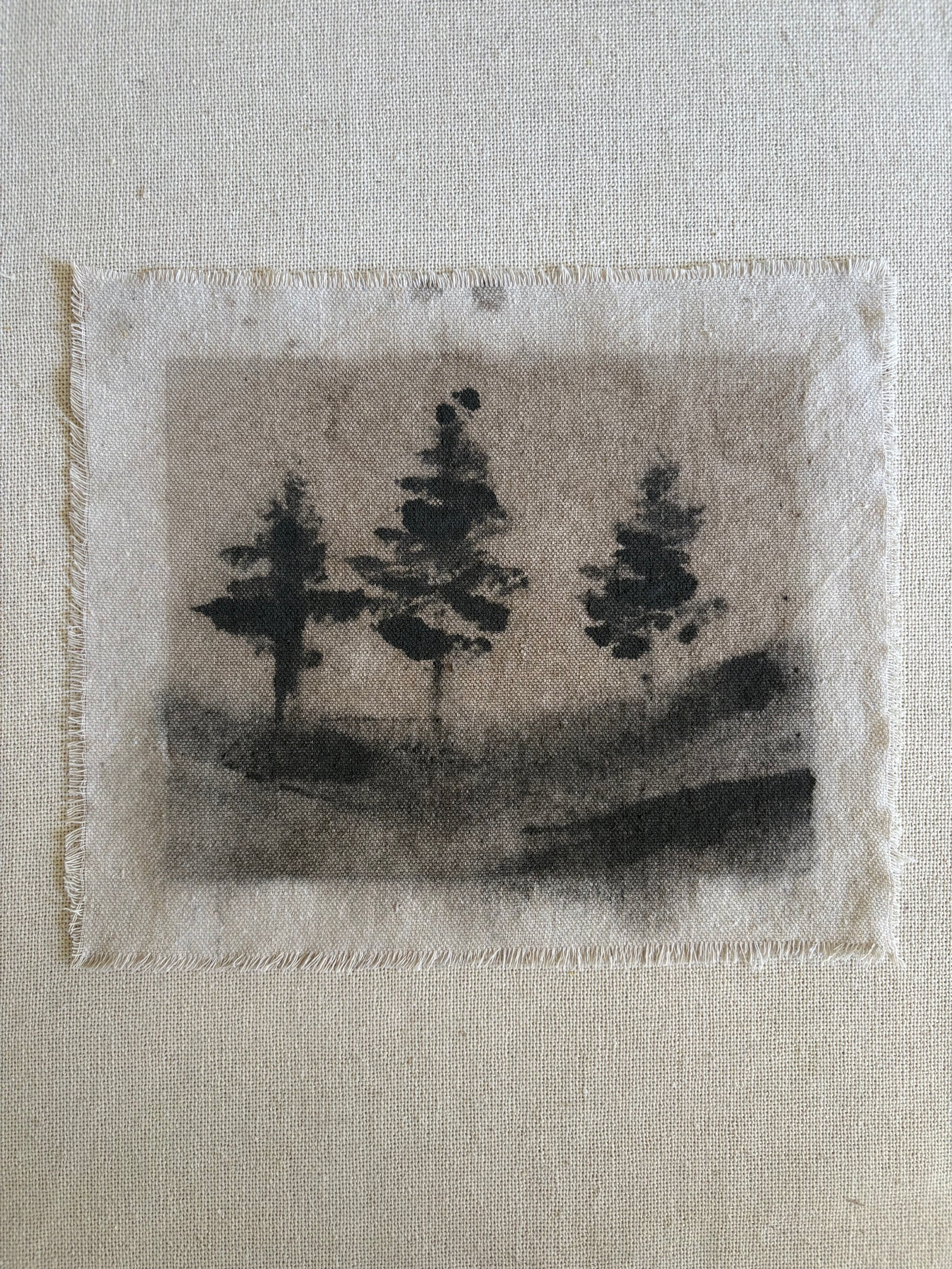 Water-based abstract landscapes on raw canvas fragments. Created from scrap canvas used in other bodies of work. By Cassidy Avalo. Unframed.