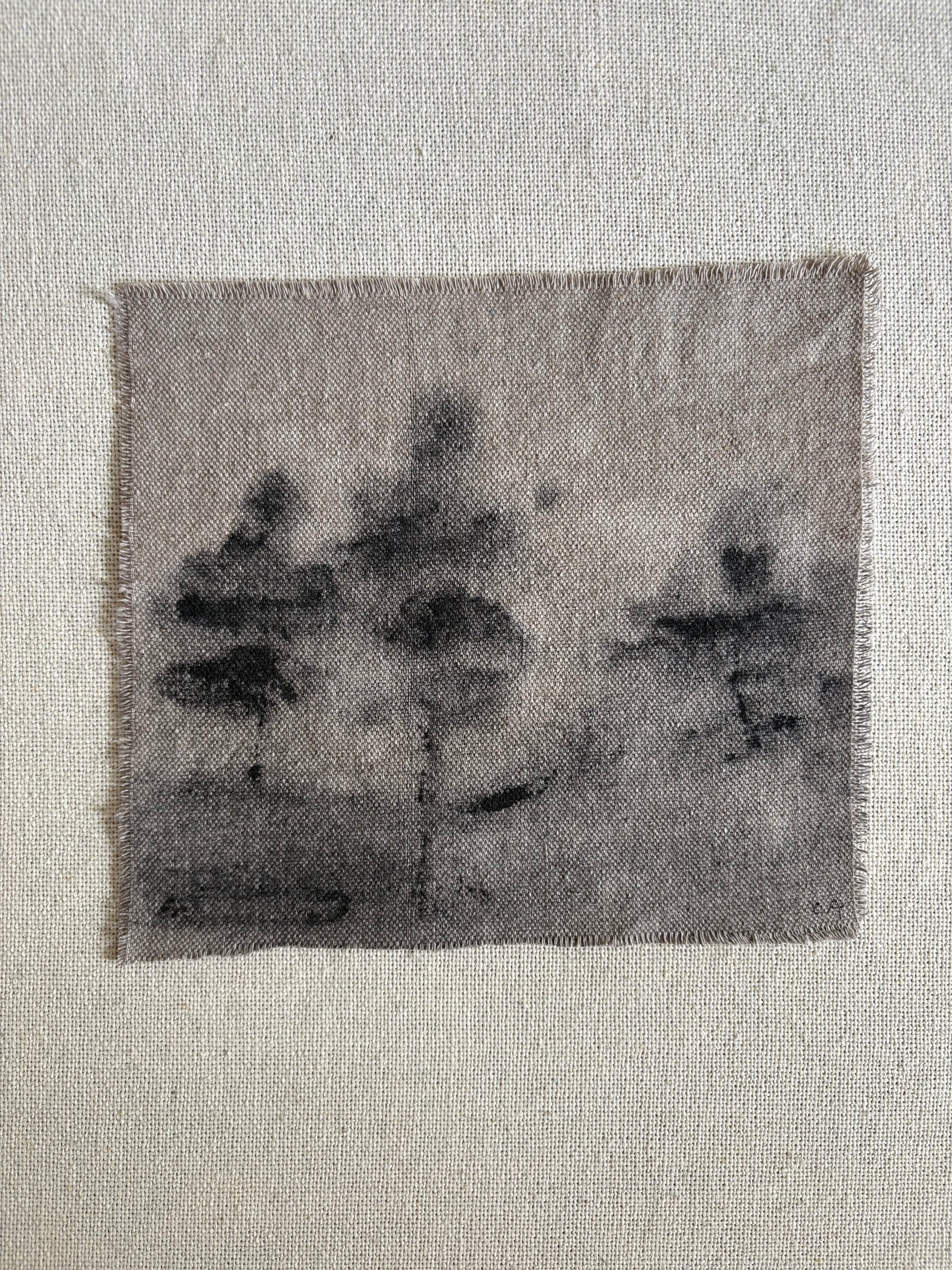 Water-based abstract landscapes on raw canvas fragments. Created from scrap canvas used in other bodies of work.