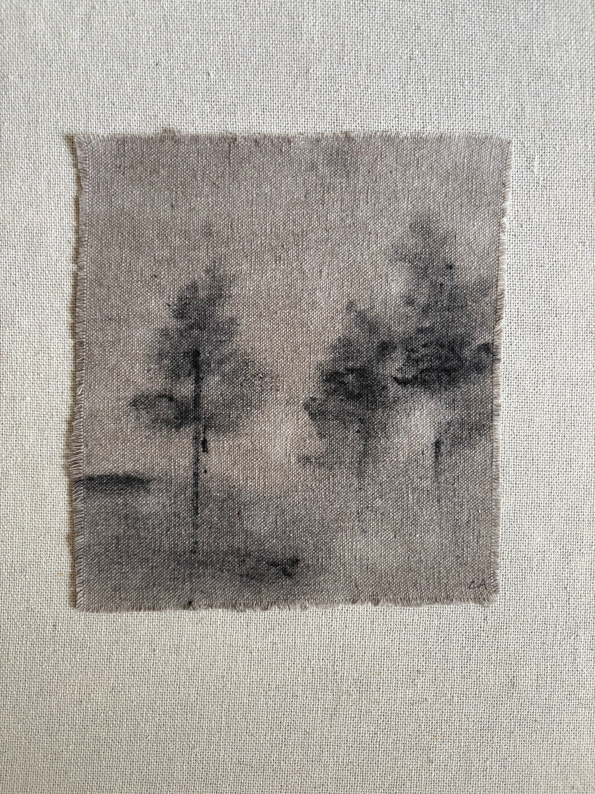 Water-based abstract landscapes on raw canvas fragments. Created from scrap canvas used in other bodies of work.
