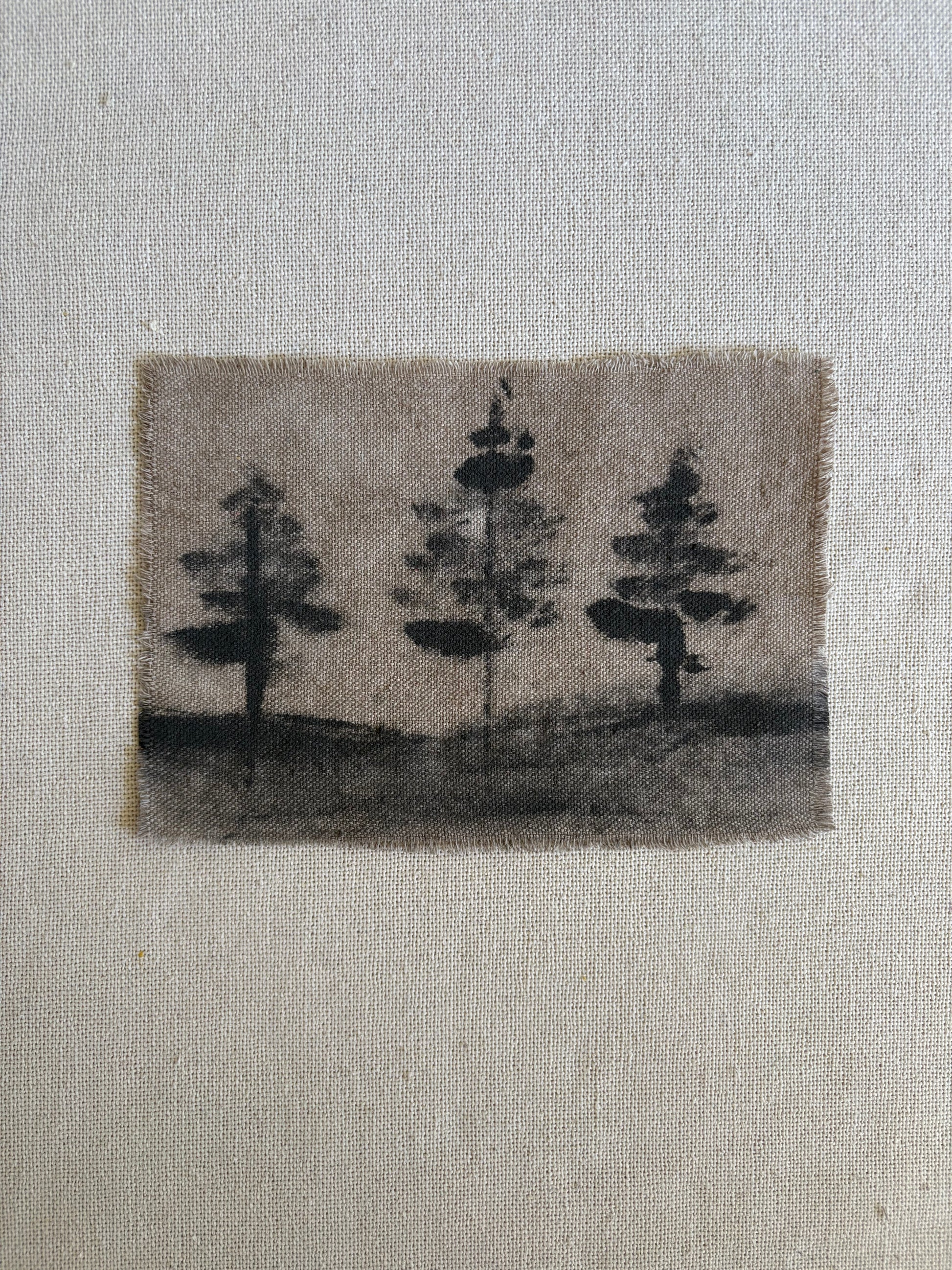 Water-based abstract landscapes on raw canvas fragments. Created from scrap canvas used in other bodies of work. By Cassidy Avalo. Unframed.