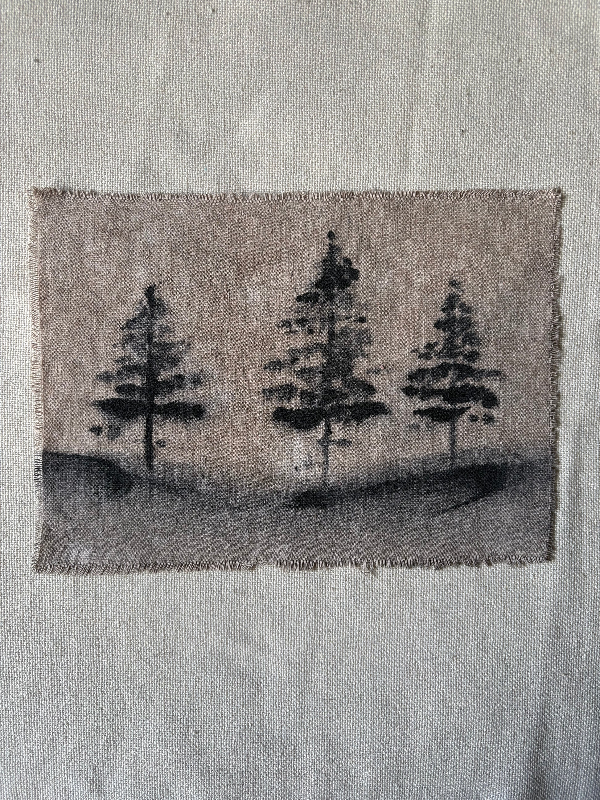 Water-based abstract landscapes on raw canvas fragments. Created from scrap canvas used in other bodies of work.