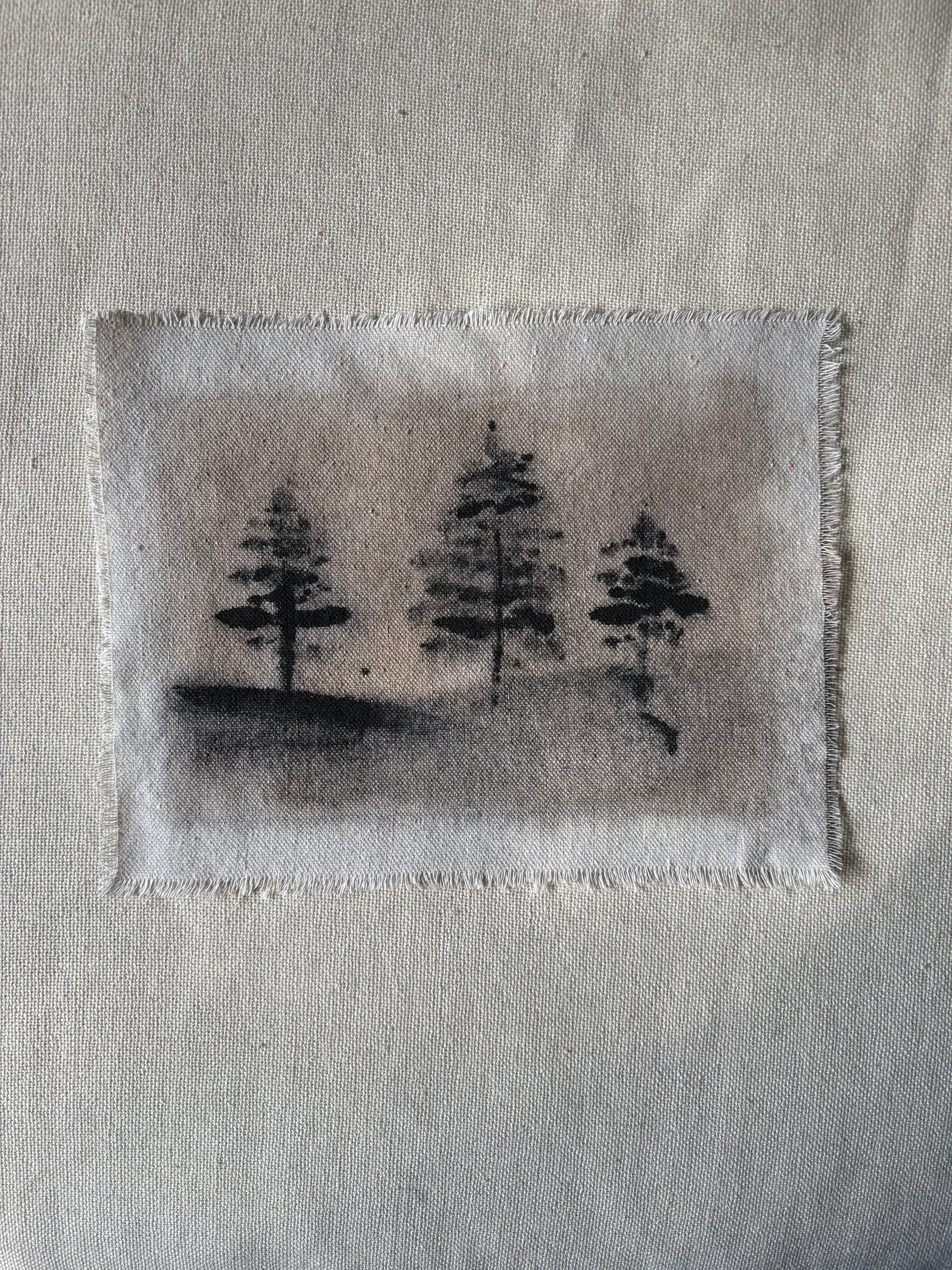 Water-based abstract landscapes on raw canvas fragments. Created from scrap canvas used in other bodies of work.