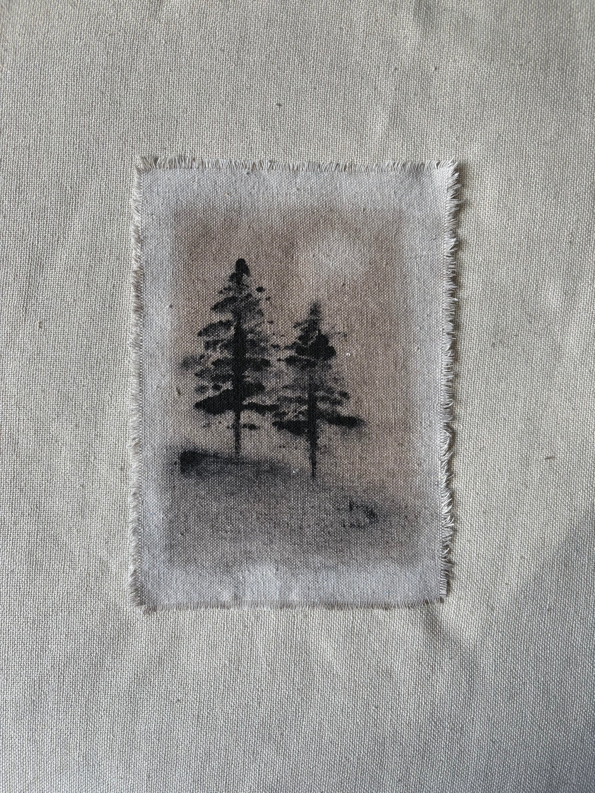 Water-based abstract landscapes on raw canvas fragments. Created from scrap canvas used in other bodies of work.
