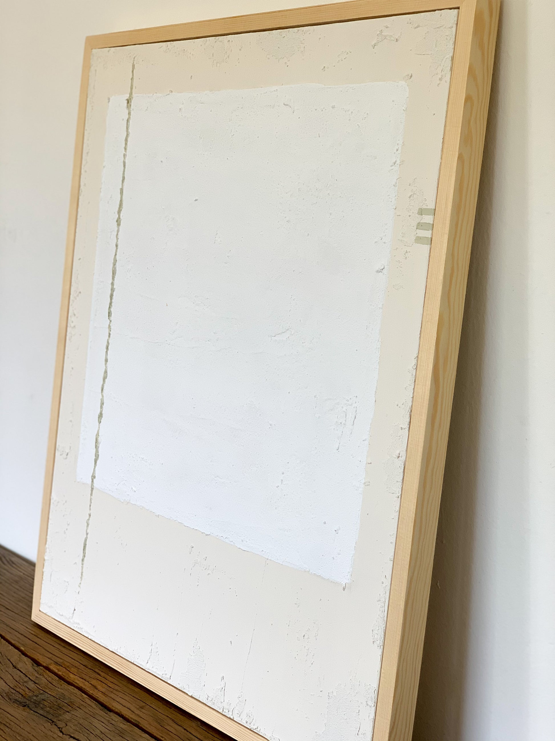 Mixed media, textural abstract painting on canvas. 24 x 30 in canvas. 24.5 x 31.5 in with natural finish pine frame by Cassidy Avalo (CALO).