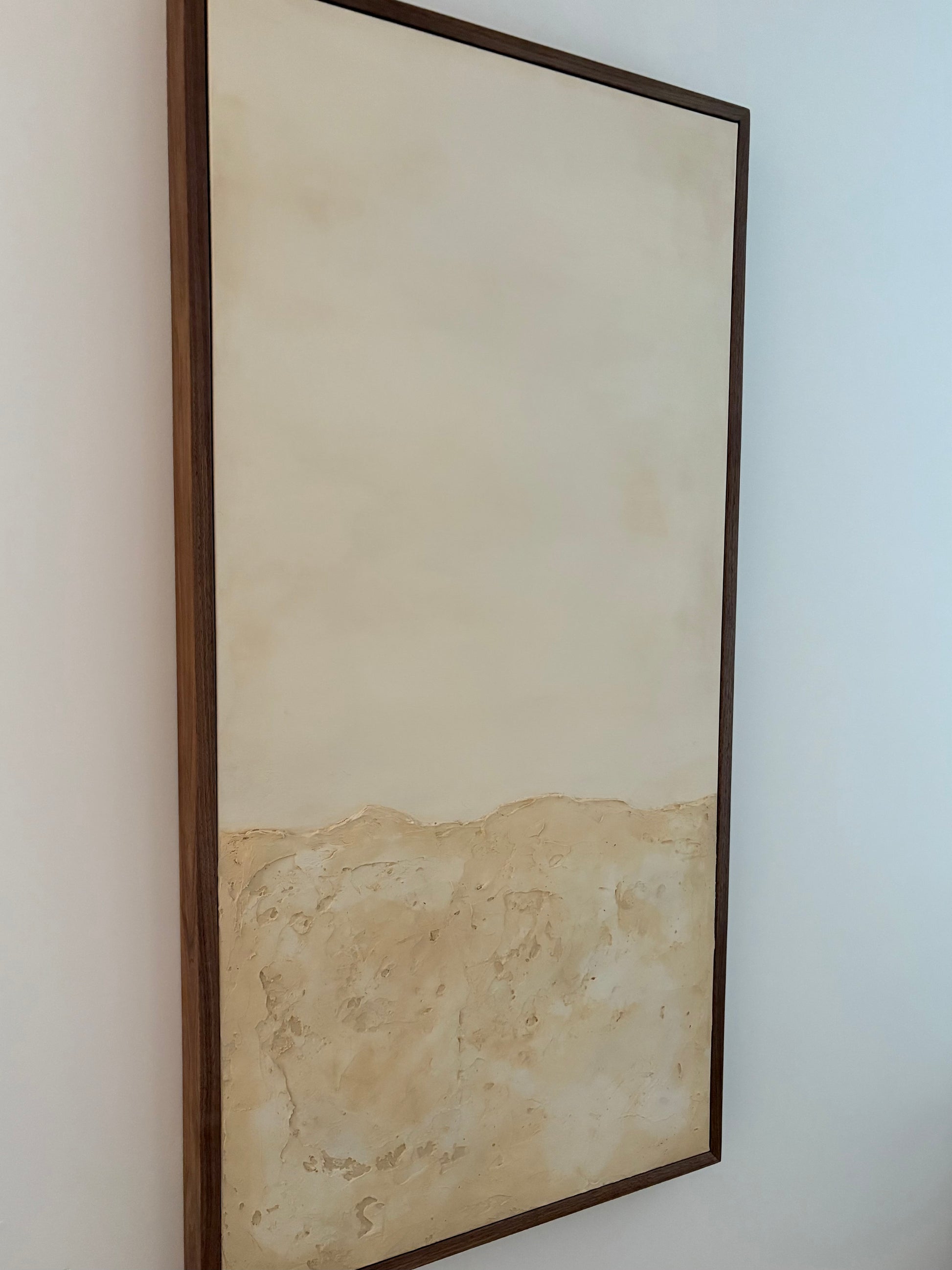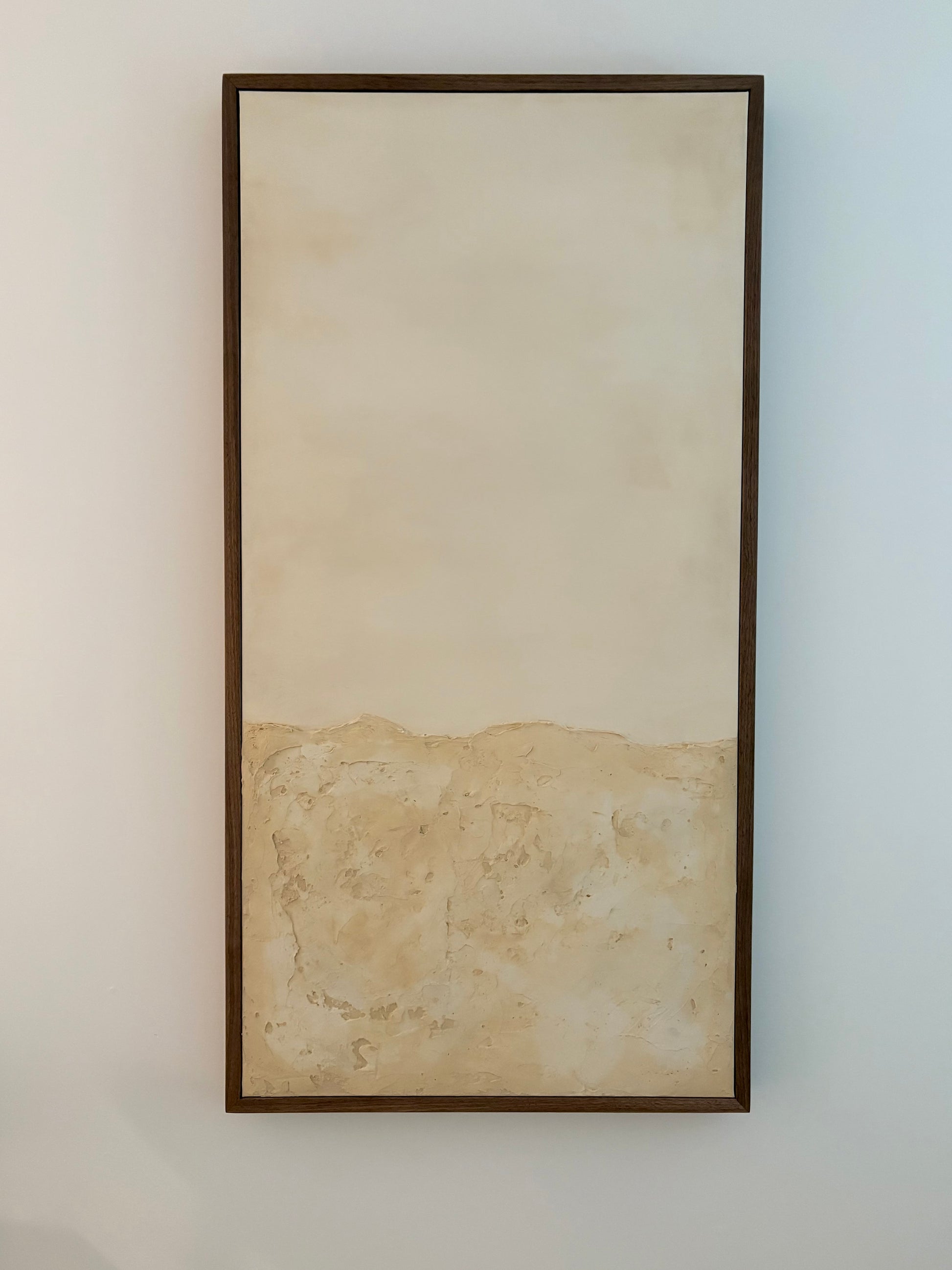 Mixed media on canvas by David Avalo. 24x48 canvas in a walnut halo frame.