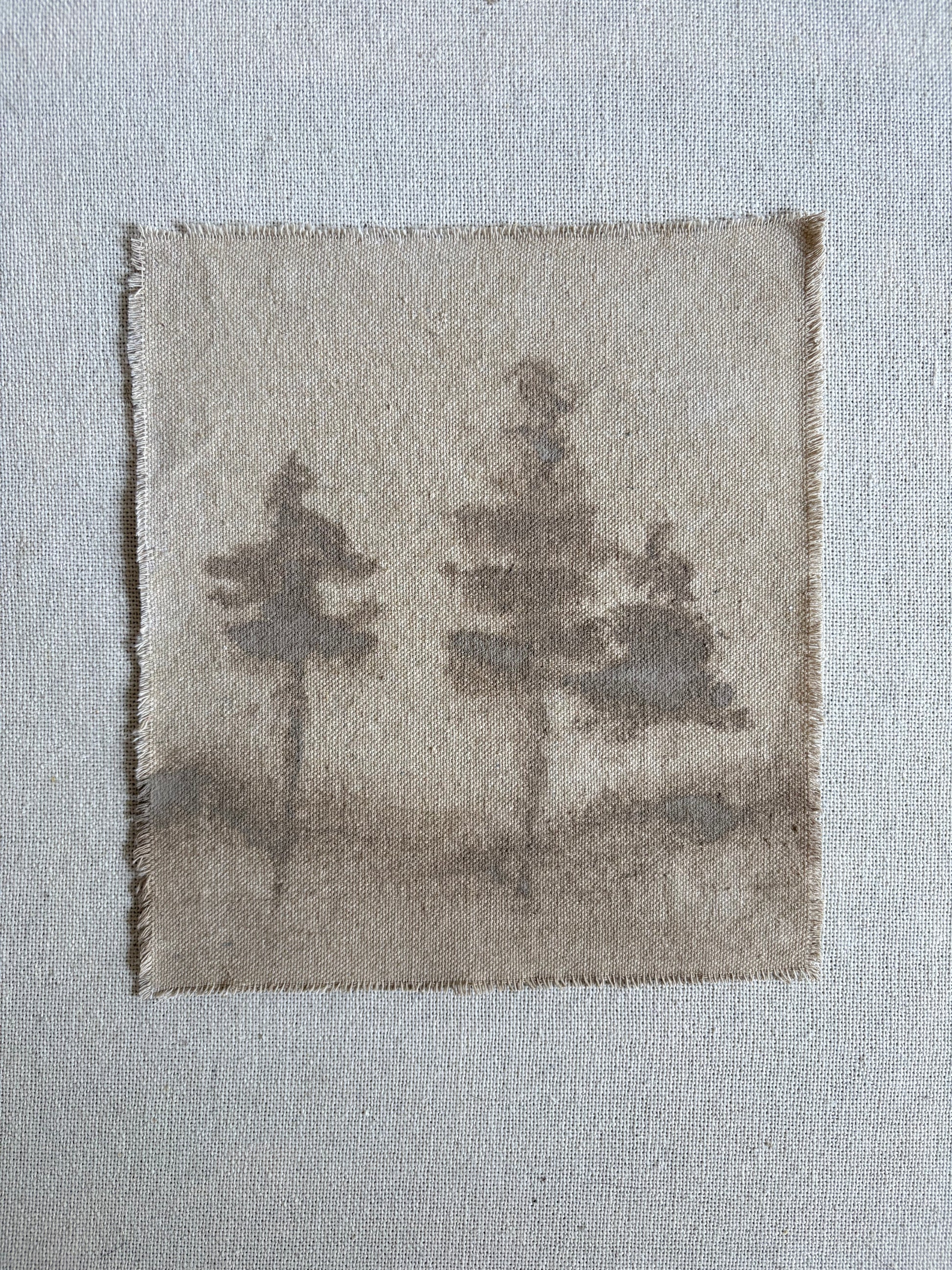 Water-based abstract landscapes on raw canvas fragments. Created from scrap canvas used in other bodies of work.